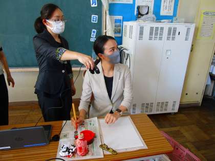 先週に引き続き、江森先生と河野先生が来校し、3年生と一緒に書写の学習を行いました。