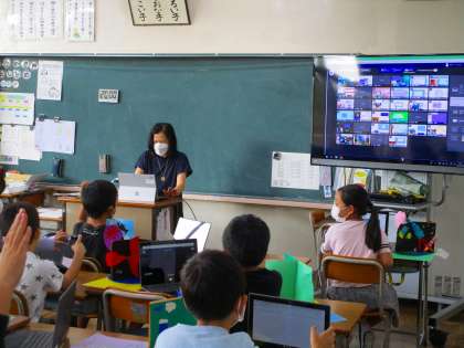 画面越しに交流するお友達と、直接交流するお友達がいますが、授業をスムーズにすすめることができていました。
