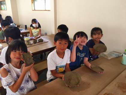 工房の方の説明をよく聞き、粘土が乾かないように、そして水を付けすぎないように気を付けながら、思い思いの作品を作りました。