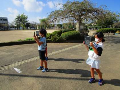 これまでは、担任の先生が写真を撮って、記録していましたが、「1人1台端末」が実現した今は、子供たちがタブレットに記録する活動に変化しています。