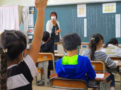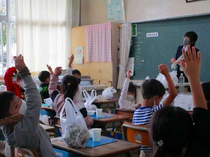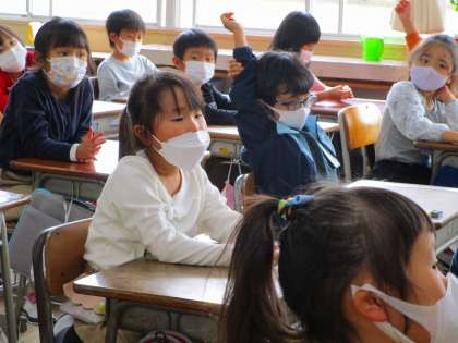先生の話を真剣に聞き、自分の意見を発表する姿は、とても生き生きしていて本校の教育目標スローガンの「自分への挑戦!」そのものでした。