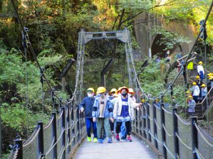 4年生が大子方面へ行ってきました。最初に訪れたのは、「袋田の滝」。マイナスイオンをたっぷり浴びてきました。