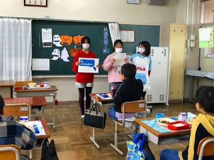 給食委員の児童が、各学級に出向き「さつまいもクイズ」を出題しました。