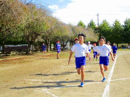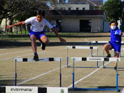 (6)800m走の順に記録を計測しました。健闘をたたえ、大きな拍手がグラウンドにひびきます。