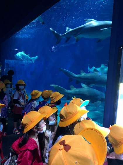 次に、館内の見学をしました。はじめにクラスで順番に見学をしました。後半は、グループ毎に見学をしました。自分たちのグループで決めたブースを、仲良く楽しんで見学することができました。
