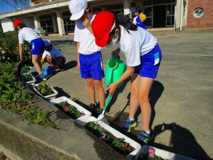 4年生がSDGs活動として、校内を花できれいに使用という取組を行ってくれています。