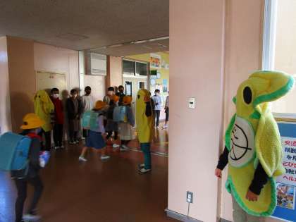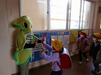 計画委員会の児童を中心に、今週あいさつ運動を昇降口で実施しています。1年生は、クローバー君をみて「かわいい」「なんだかこわい」などいいながらも、「あしたもきれくれますか?」とあいさつだけでなく話しかけている様子がとてもほほえましかったです。