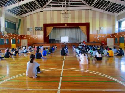 体育館に行ってみると、GTの方の説明をしっかり聞いて学習していました。