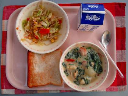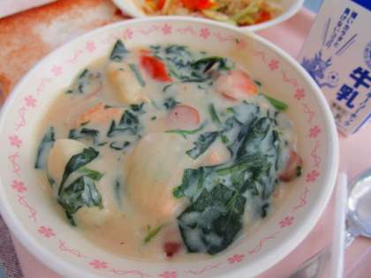 【献立】シュガートースト 牛乳 鶏肉とほうれん草のクリーム煮 野菜とツナのソテー
