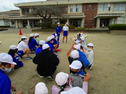 活動前に6年生のリーダーさんたちが、1年生に分かりやすく丁寧に今日の活動についてお話をしていました。1組さんは「ふやし鬼」「ドッチボール」、2組さんは「ケイドロ」、3組さんは「しっぽとり」「こおり鬼」「ふやし鬼」をして楽しみました。