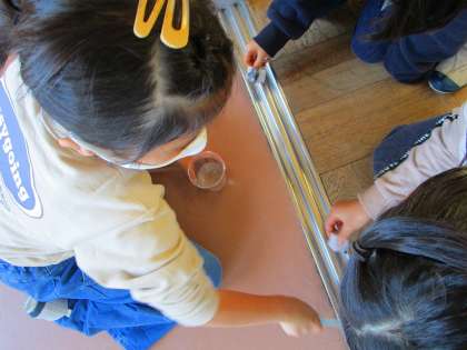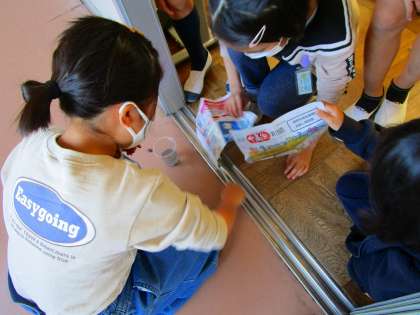 このめあての下、子供たちはお掃除をがんばっています。写真は中休みの一コマですが、教室のレールをきれいに磨いていた3年生がいました。自宅から持ってきた掃除アイテム(歯ブラシ・スポンジ・プラコップ・新聞紙)を使って楽しそうにピカピカにきれいにしていました。