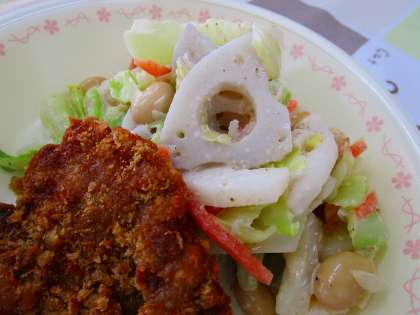 はちみつパン 牛乳 にこちゃんフライ れんこんサラダ