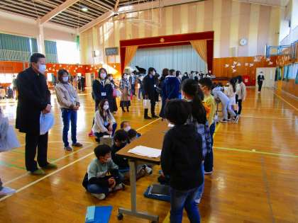 1部は、総合的な学習の時間に学習した「さつまいも博士になろう」の発表です。一人一人に調べたことや、学んだこと、料理に挑戦したことをタブレットを活用して「スライド」を作成し、そのスライドを示しながら発表を行いました。