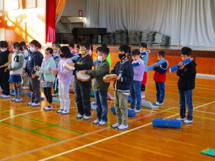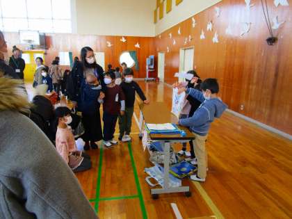2部は、生活科で実施した「まちたんけん」の発表を班ごとに行いました。ペープサートや紙芝居などで班ごとにまとめた内容を、他の班やお家の人たちに、分かりやすく説明してくれました。