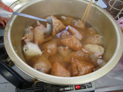 新型コロナウイルス感染症拡大防止に伴い、サバイバル飯(小袋にといだお米と水、調味料を入れて袋ごと煮て炊く手法※左写真)で炊いたおにぎり大のご飯をみんなで試食しました。