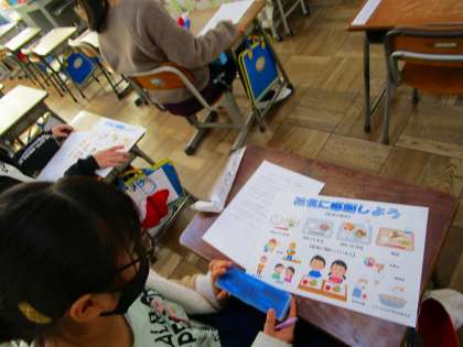 写真は、栽培委員会(花壇の手入れ)、給食委員会(給食の日・感謝の手紙・次年度に向けた準備など分担して活動)の様子です。