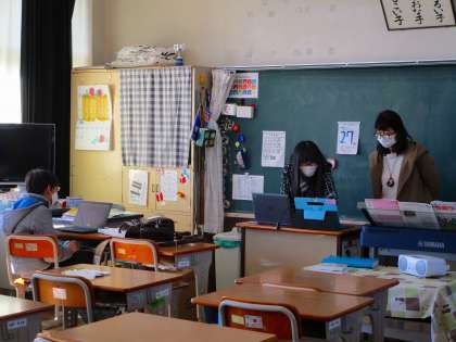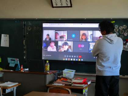 各学級では、双方向のリモート授業を取り入れています。画面越しではありますが、子供たちの姿をみることができて、嬉しいです。