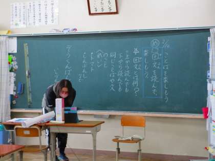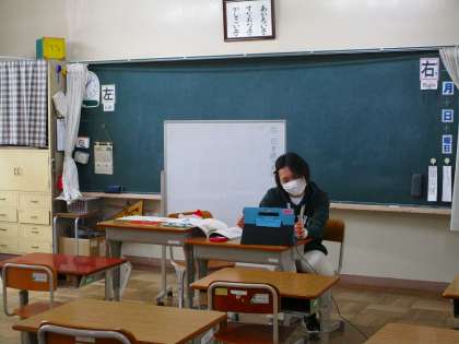 ※写真は支援学級で、リモート授業を行っている様子です。