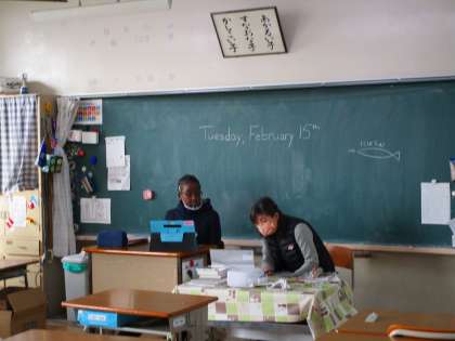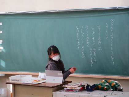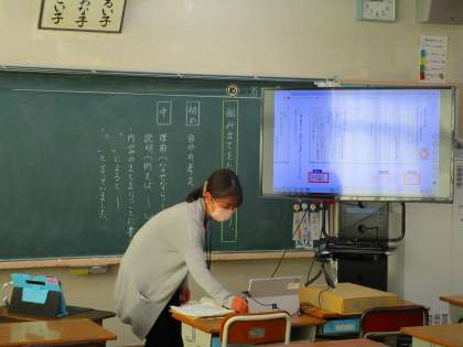 教室には、預かりを必要としている児童が数名来ています。担任の先生は、オンラインやオフラインを組み合わせた授業を行っています。オンラインではデジタル教科書を併用したり、オフラインでは動画を活用するなど、前回の臨時休業期間より授業改善をしています。