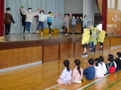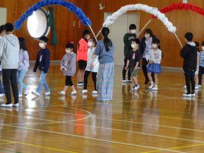今日は、6年生が計画した1年生を迎える会を行いました。感染症対策として、全校児童ではなく6年生と1年生の参加で実施しました。6年生から、運動会や遠足などの行事の様子を楽しく紹介してもらいました。また、長堀小のクイズでは、1年生も楽しく参加していました。6年生からメダルと学級で使うボールをプレゼントしてもらい、1年生はとてもうれしそうでした。