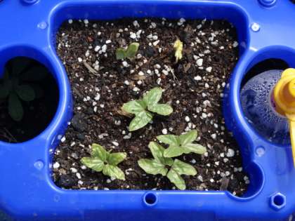 1年生が、育てているアサガオの芽が、出始めました。教室の窓から発見した子供たちが、うれしそうに話しています。中休みには、自分の植木鉢にみんなで、水をあげました。「早く大きくなるといいな。」そんな声が聞こえてきました。