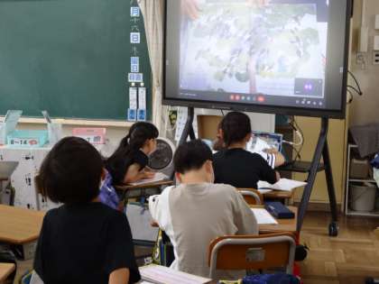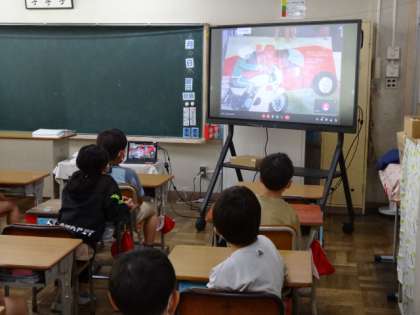 今日は、虹の会の皆さんによる読み聞かせの日です。2年生、3年生、4年生が実施しました。前回と同じように感染症対策として、オンラインで行いました。子供たちは、電子黒板の大きな画面に映し出された絵本に見入っていました。
