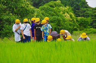 今日は、5年生が田んぼに苗の成長の様子を見に行きました。田植えをしたときには小さかった苗が、とても大きくなっていて、みんなびっくりしていました。