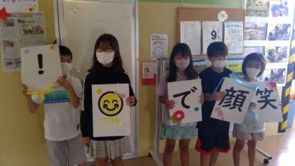 今日から、4年生があいさつ運動を始めてくれています。手作りのパネルをもって、元気な声であいさつを呼びかけています。マスクをしているので、大きな声は出せませんが、気持ちの良いあいさつはできますね。