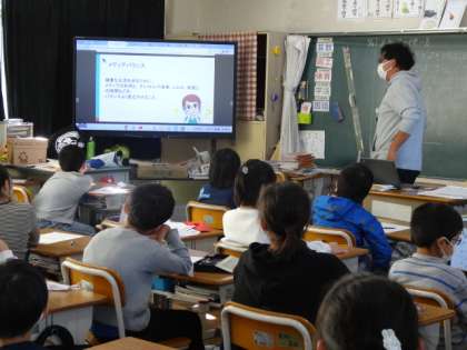 今日は、4年生と5年生で、メディアバランスについて学習しました。どんなメディアを、どんな目的で、どのくらいの時間、使用しているのか、振り返りました。その後、バランスのよいメディアの活用について、考えていきました。