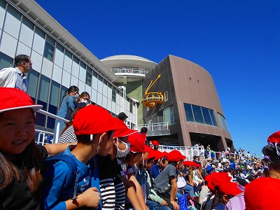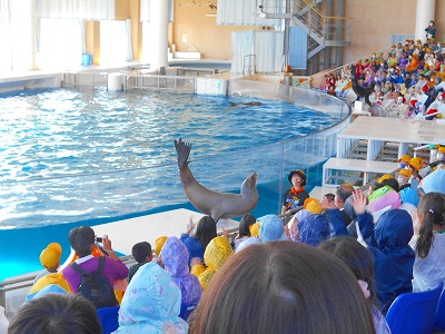 アクアワールドは、19の小学校や一般の方などで賑わっていましたが、仲睦まじく声をかけ合って見学しました。5つのチェックポイントを通過し、満足げな表情が見て取れました。イルカショーでは、大きな歓声があがり楽しそうでした。
