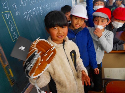 12日(金)に長堀小にもメジャーリーガー大谷翔平選手からのプレゼント野球グローブが3個(右利き用2個、左利き用1個)届きました。