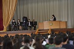 その後、新任式で10名の新しい先生方をお迎えし、始業式となりました。あいさつや式に臨む態度などがとても立派で、子供たちのやる気が体育館中にあふれていました。
