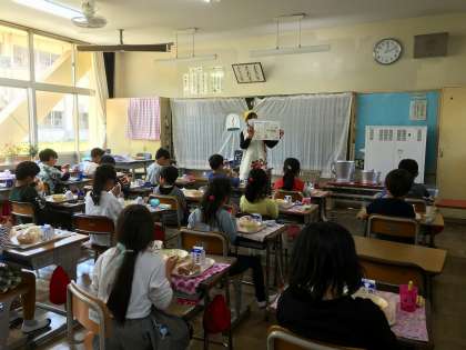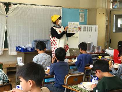 「クラス全員で協力し,給食の準備や片付けをすばやく丁寧に行いましょう!」