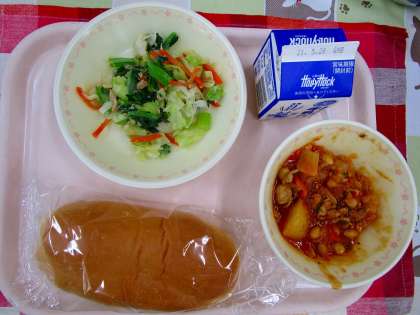 みなさんは食事の時,正しい姿勢で座っていますか?イスにもたれて食べたり,ひじをついて食べたりしていませんか。また,横を向いたり,後ろを向いたりしていませんか。食べる時は前を向き,足の裏を床にしっかりつけて,背すじをのばして座ります。前かがみになったり,ひじをついたりしないようにするために,食器を手に持って食べましょう。