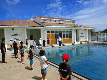 プール施設内に入ると、委員会の児童たちは「懐かしい!」「早く入りたい!」と、2年振りのプールを楽しみにしている様子が感じられました。