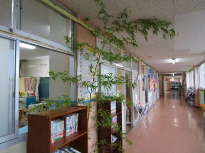 来週の七夕に向けて、地域協力者の海野富男さんが、各学年に「笹」を持ってきてくれました。