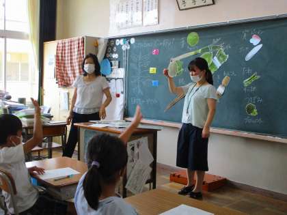 「給食で食べている野菜は、どこの部分かな?」を子供たちと一緒に学びました。
