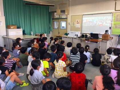 代表児童が現在全校で学習している「SGDs」の紹介や、がんばっていること、長堀小学校のマスコットキャラクター(クローバー君)の紹介などをしました。あっという間の交流タイムでした。第2回目が楽しみです。