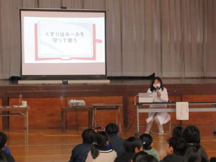 6年 薬物乱用防止教室 公開日 2024/12/11 更新日 2024/12/11 校内行事 10日(火)の5時間目に、学校薬剤師の方から薬物乱用防止についての話をしていただきました。ルールを守って飲まなかったときの危険性など、薬物乱用に関することだけでなく、正しい薬の飲み方やルールについて教えてもらいました。 子供たちは、出された問題について考えたり実験したりしながら、真剣に薬物の効果や副作用について学ぶことができました。