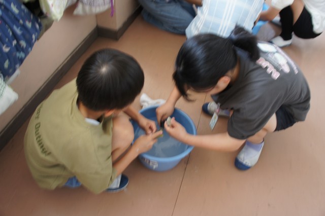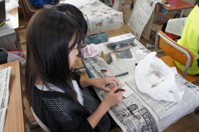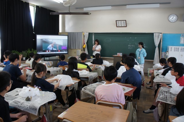 7月10日(木)6年生の社会科の授業で、「勾玉づくり」を体験しました。やわらかい石を、自分の手で少しずつ削り、世界に一つだけの勾玉を作りました。紙やすりを使って、形を整えたり、表面をなめらかにしたりする作業は、思ったよりも時間がかかりましたが、集中して丁寧に取り組んでいました。最初は「かたい!」「難しい!」という声もありましたが、削るうちにだんだんと勾玉の形が見えてくると、「もっと丸くしたい!」「ピカピカにしたい!」と楽しそうな表情に変わっていきました。完成した勾玉は、一つ一つ違った表情をしていて、とても味わいのある作品ばかりでした。子供たちは、自分の手で形づくっていく達成感を味わいながら、ものづくりの楽しさを実感していたようです。今回の体験を通して、昔の人々がどのように道具を作っていたかを、自分の手で感じ取っていたようでした。