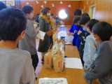 5年生が職員室に来て、先生方にメッセージカード付きの「長堀米」をプレゼントしてく...