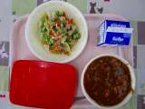 【献立】ごはん 牛乳 ポークカレー 寒天入りヘルシーサラダ 【献立のねらい】寒天...