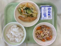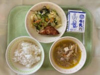 今日の給食ごはん牛乳ししゃもフライチンゲンサイの酢醤油あえ肉じゃが