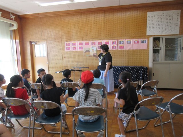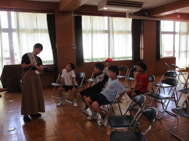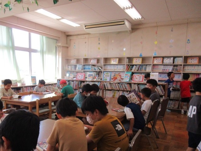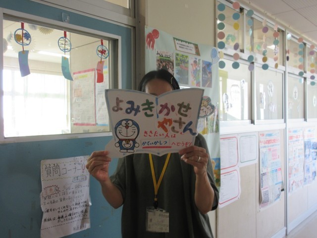 中休みは暑さのため、校舎内で過ごすことになりました。図書室は大盛況です。図書室前では「読み聞かせ屋さん」の看板をもっている方がいます。「音楽室で読み聞かせ屋さんをやっているよ」の声に、「行ってみよう」とたくさんの子が音楽室に向かっていました。のぞいてみると、2つのグループに分かれて読み聞かせをしていました。参加した子は、「楽しかった」「またやってくれるかな」と話をしていました。外で遊べないのは残念でしたが、読み聞かせをしてもらってよかったですね。もくせいおはなしの会の皆様、ありがとうございました。