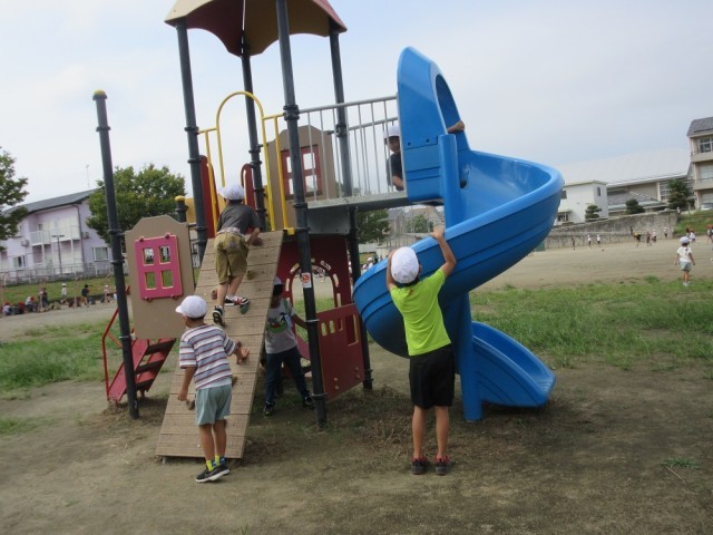 昼休みの校庭では 公開日 2025/09/10 更新日 2025/09/10 学校生活のようす 今日はとても涼しい日でした。朝は雨が降っていましたが、休み時間には外で遊べました。いつもよりもたくさんの子が外で遊んでいるようです。遊具で遊んだり、ドッジボールをしたり。木の枝を拾ったり、虫をつかまえたり。クラス遊びをしているクラスもありました。 +1