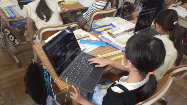 1年2組では、算数の時間に引き算の学習をしました。ブロックや図を使って考え、タブレットでみんなの考えを共有しました。分かりやすく考えを発表する児童がたくさん見られました。2年2組では、算数の時間に繰り下がりのある引き算の方法を学習しました。筆算を使って図と結びつけながら考えていました。難しい所は、教え会いながら学習する姿が見られました。