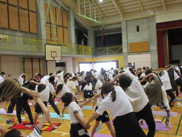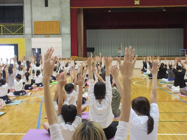 3年生 親子ヨガ 公開日 2025/10/03 更新日 2025/10/03 3年生 3年生の親子学習会がありました。親子で一緒にヨガをします。お家の人が隣にいるので、始める前からみんな嬉しそうです。ヨガでは、親子で手をつないでストレッチをしたり、足の裏をくっつけてその足を上に上げたりもしました。お家の人と一緒に運動できて、よかったですね。みんなにこにこ笑顔でした。学年委員の皆様が計画・準備してくださいました。講師の先生、学年委員さん、ありがとうございました。 +2