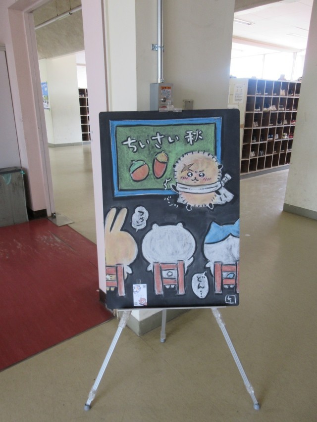 職員玄関まわりには、秋を感じるものがたくさんあります。地域の方がもってきてくれるお花と黒板アートなどです。いつもありがとうございます。毎回楽しみにしています。学校にいらっしゃるときには、ぜひご覧ください。