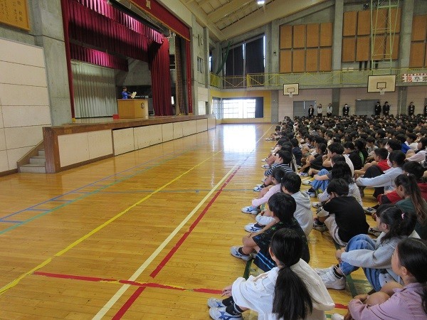 前期の終業式を体育館で行いました。2年生の代表児童は「運動会、水泳のクロール、算数の筆算をがんばった」4年生の代表児童は「生き物について自学で調べるのが楽しい、手を挙げられるようになり自信になった」と発表しました。校長先生からは、前期を振り返って、「話をよく聞いている子、努力している子、友達と協力して活動できる子がたくさんいてうれしい」と話がありました。最後に、6年生のピアノ伴奏に合わせて、校歌を元気いっぱいに歌いました。前期を振り返って、後期につなげていってほしいと思います。