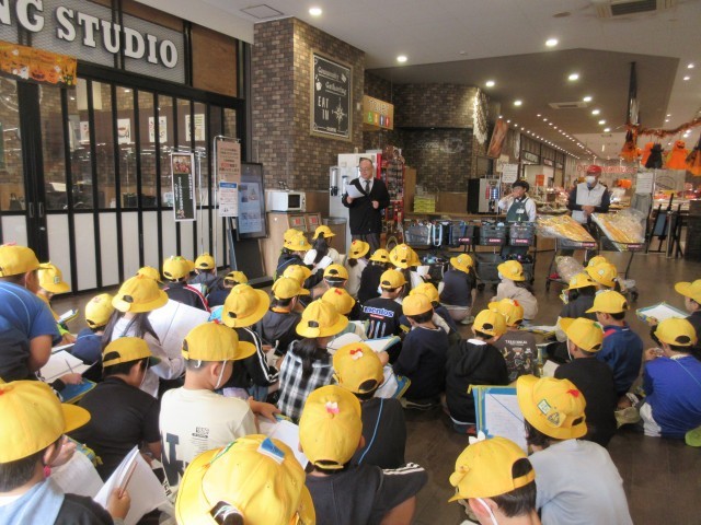 10月15日(水)に3年2・4組がスーパーマーケットの見学に行きました。お店の中を案内していただきながら、販売するときの工夫について説明を受けました。普段は入れないバックヤードも案内してもらい、販売の準備の様子を見ることができました。最後には、たくさんの質問にも丁寧に答えていただき、充実した学習を行うことができました。児童は、目を輝かせながら見学することができました。